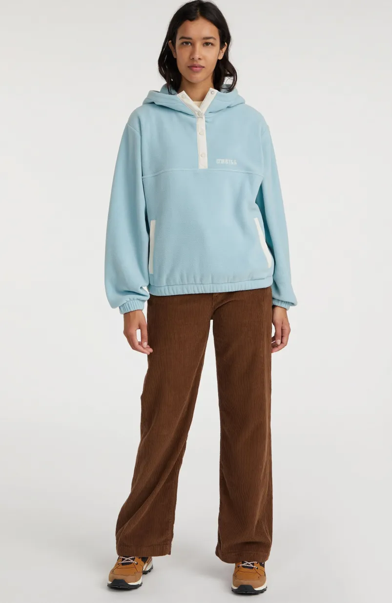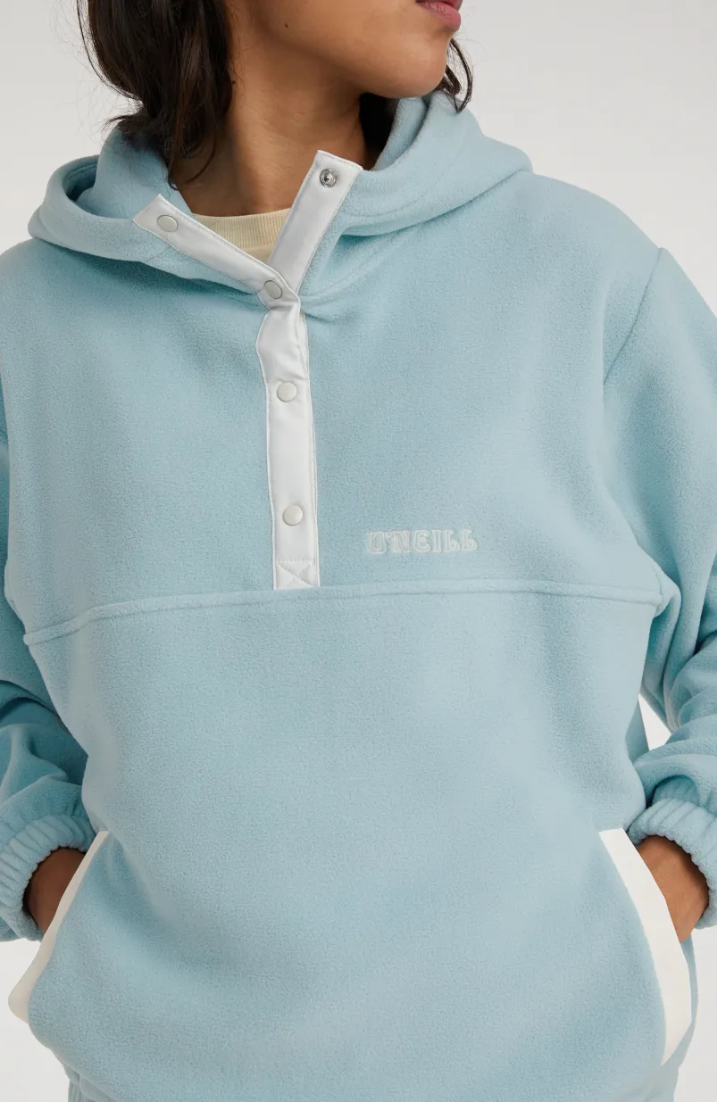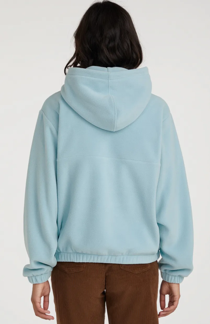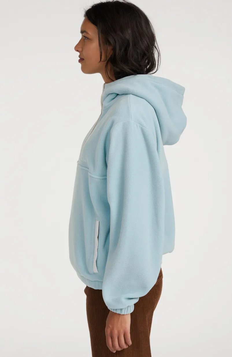 Met dit exemplaar kun je het hele jaar door alle kanten op. De hoodie Superfleece met halve rits heeft een losvallende pasvorm en is gemaakt van ons bekende superfleece. Hierdoor is de hoodie licht, warm, superzacht en gemakkelijk mee te nemen. Met dit model blijf je lekker warm tijdens al je outdooravonturen: ideaal voor op reis en voor extra comfort na het surfen. De dubbellaagse capuchon en elastische zoom en mouwboorden bieden optimale bewegingsvrijheid en houden je lichaamswarmte vast.